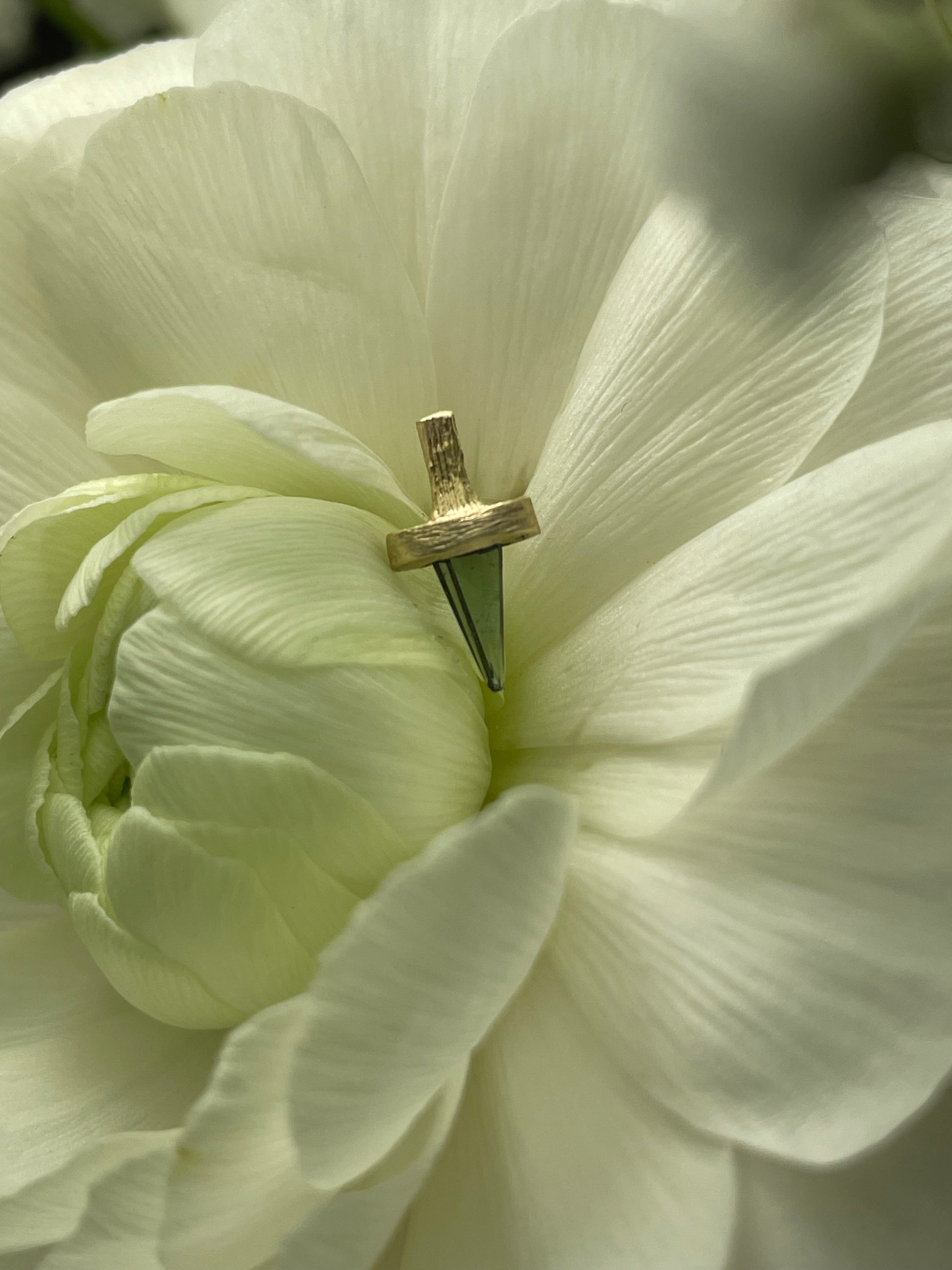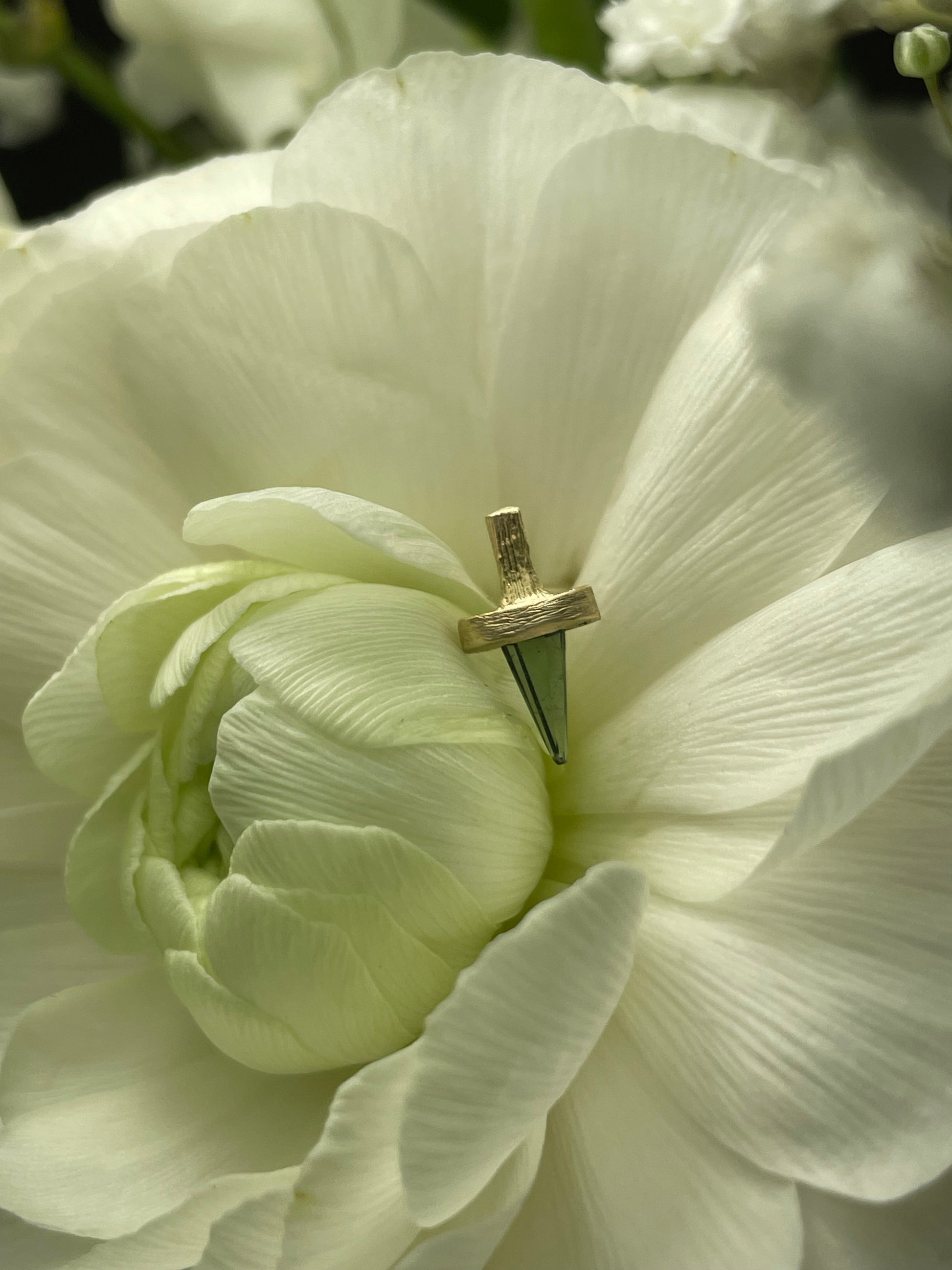 A dagger forged from a droplet of silken gold and a sliver of crystal honed to a point. Inspired by works of fantasy.